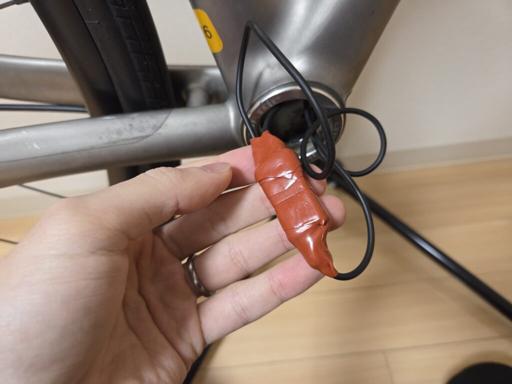 フロントディレイラーを撤去したことでdi2のジャンクションBからケーブルを外した。ポートが1つ歯抜け状態になり、専用のダミープラグを刺す必要があるが1つ数百円と高い。