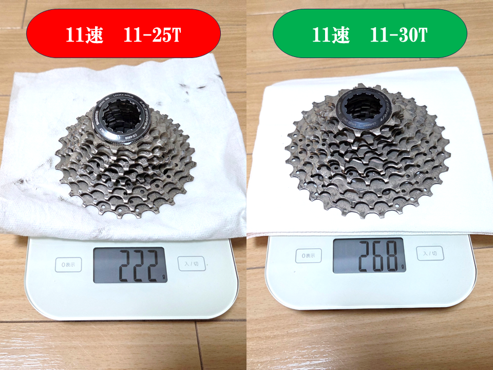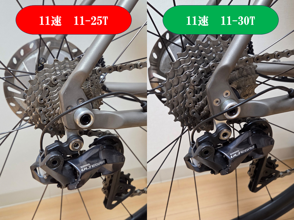 他にもギアを軽くするなら11-32Tや11-34Tの選択肢もあるが、今使っているリアディレイラーの上限が11-30Tがだったからこれが限界。