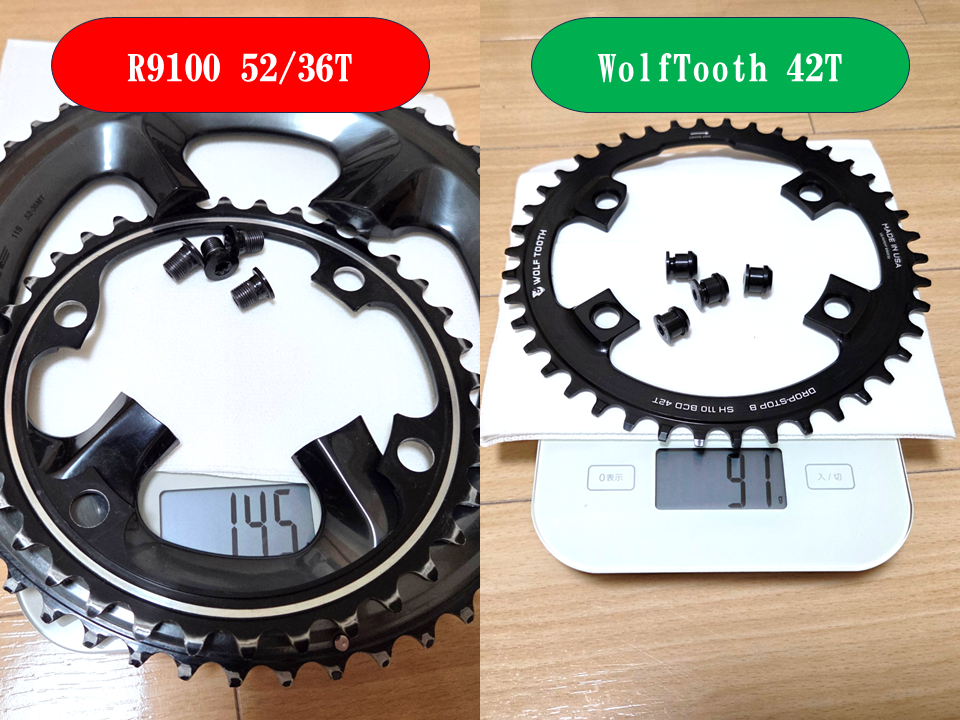 スプロケットはワイド化したから唯一増量したパーツ。条件を揃えるため同じアルテグラグレードのものを採用。