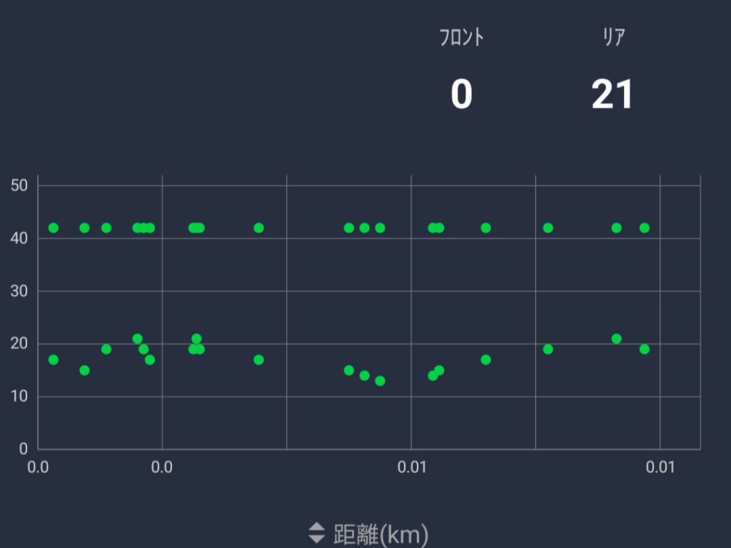 インナーに入る寸前の21Tから17Tの間(ギア比2.47~3.06)で使っていた。チェーンラインも斜めっていた。